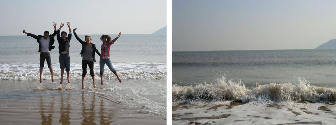 欣賞完美輪美奐的沙雕,我們來到了海邊。沙雕城對(duì)面就是一片蔚藍(lán)的汪洋大海。十一月的海邊雖然有點(diǎn)冰涼,但也不能阻止我們看到寬闊大海激動(dòng)的心情。我們迎著海風(fēng)奔跑,放飛翅膀,放飛夢(mèng)想,感受海天交接的壯觀。今天的行程可以用一句話來描述:魅力舟山,快樂朱家尖島;舟山朱家尖島,歡樂沙雕城。