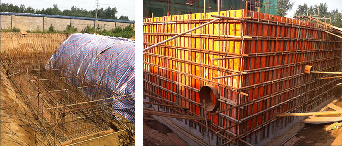 西華項目在公司各部門協助下抗高溫、戰酷暑,兩個月開工以來,完成了二沉池全部的全部土建主體工程,生化池的底板澆筑工程、絮凝反應池的全部主體工程、濾布濾池完成底板和鋼筋綁扎;綜合樓開始制作屋頂的鋼筋綁扎工作,輔助機房主體結構已完成。粗格柵部分底部鋼筋、剪刀墻鋼筋制作完畢,做模板安裝準備工作(粗格柵底板鋼筋分段制作)。細格柵和污泥池整個工程未破土動工,其余都按照進度計劃推進中。