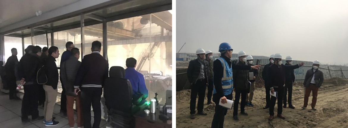 走出電廠,代表們又參觀了土壤污染修復項目,詳細了解了整個項目的背景、狀態(tài)、技術(shù)及修復進展,并參觀了現(xiàn)場的施工大棚和臭氣處理及污水處理設(shè)備。