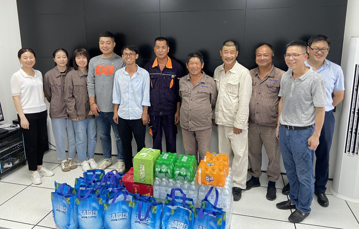 近期氣溫居高不下,室外溫度已超40°,為了更好地讓員工開展日常工作,關愛員工的生活與工作。黨支部書記、董事長王衛民、工會主席張莉及中層干部代表給一線員工帶去問候,讓大家感受公司濃濃的關懷和夏日里的清涼。
